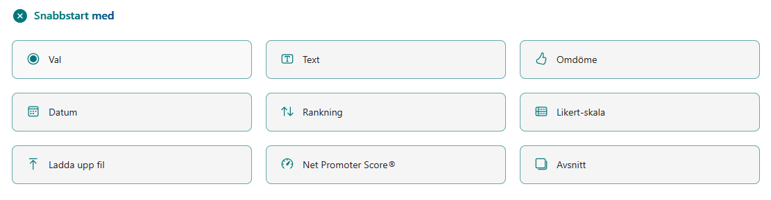 - Text är en frågetyp som tillåter deltagare att svara på frågan med fri text.