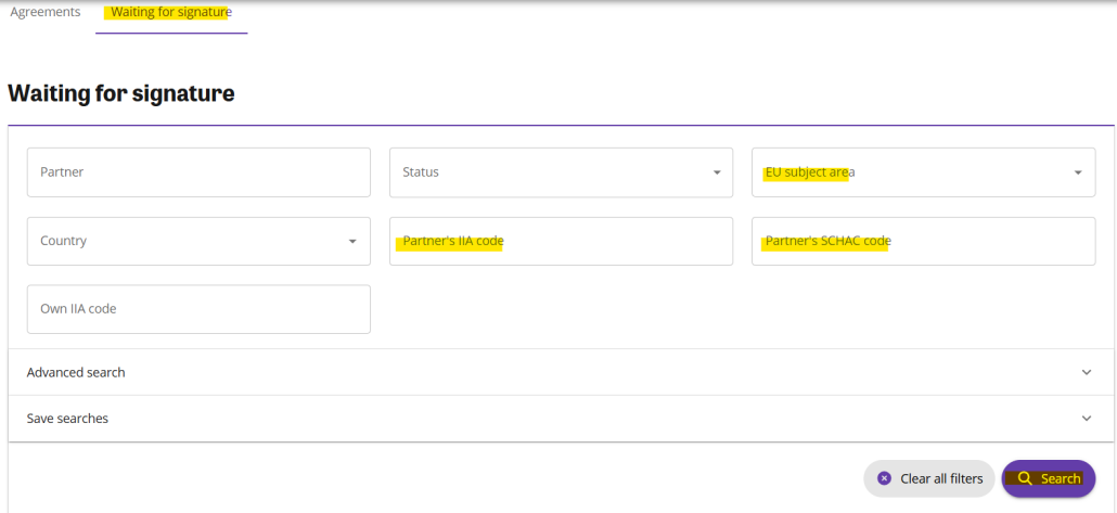 - partneruniversitetets avtal under ’Waiting for signature’.