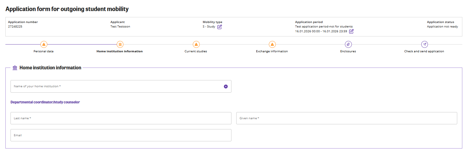 Step 4. Fill in your home institution and your contact person