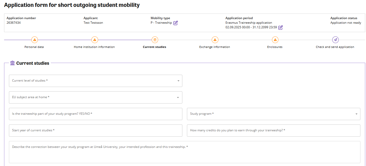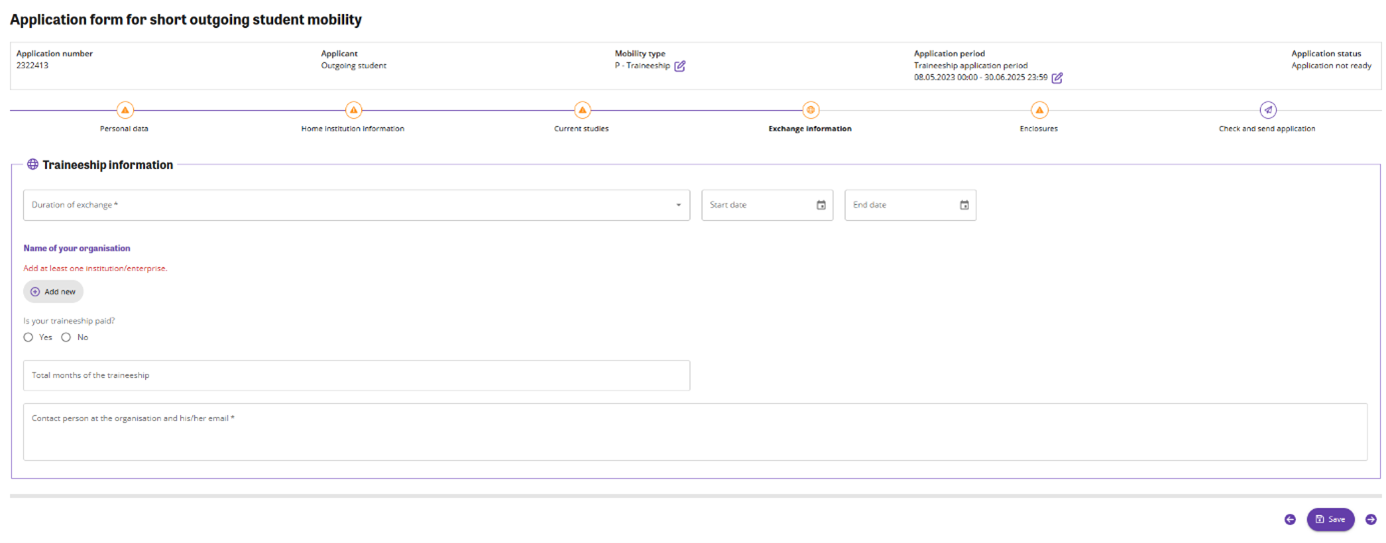 Choose ‘Other’ from the drop-down list under ‘Duration of exchange’ and specify both the start- and end date of your traineeship.
