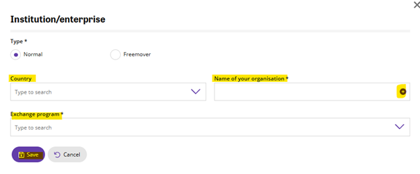 Select ‘Erasmus’ in the field ‘Exchange program’. Click ’Save’.