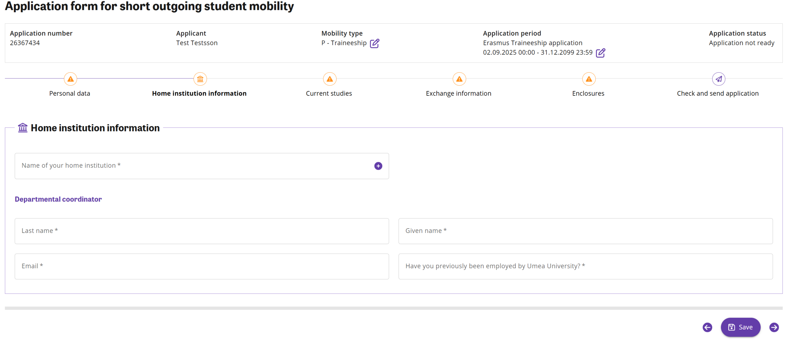 Go to the ‘Home Institution information’ tab by clicking the arrow.