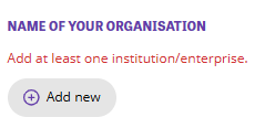 If you cannot find the name of your organization in the list, click ‘Add new’ and fill in the following fields: