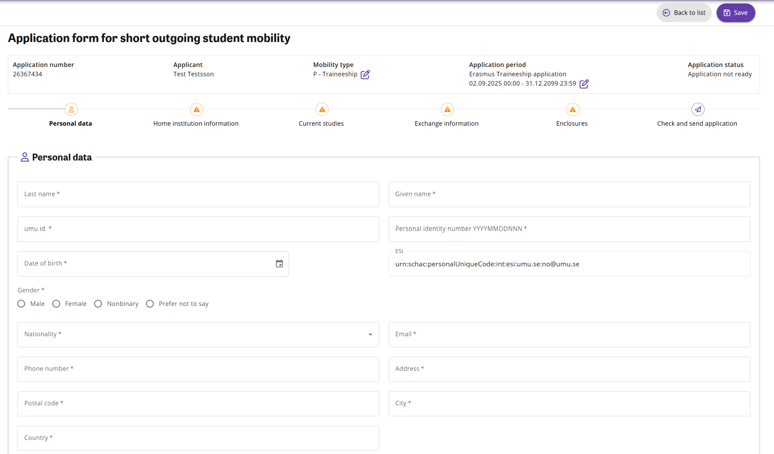 EU subject area at home: Choose from the drop-down list. If you are unsure, contact the International Contact Person at your department.