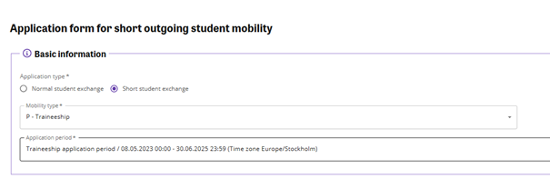 Choose ‘Short student exchange” and Mobility type ‘Traineeship’.
