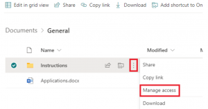 - Click on the three dots and then Manage access.