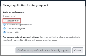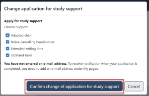Change your application for recommended study support