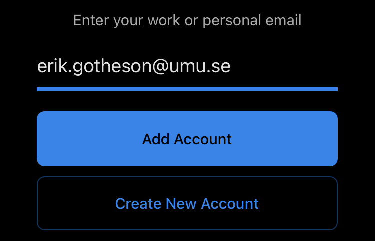 1. Start Outlook, enter you UMU mailadress, ex: test.testsson@umu.se and click on Connect.