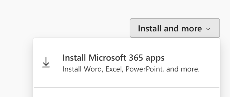 - When your logged in into Office 365, click on Install and more and then Install Microsoft 365 apps.