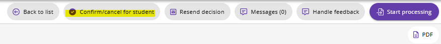 Ansökan kan markeras som ’Cancelled’ innan eller efter att studenten har fått beskedet.