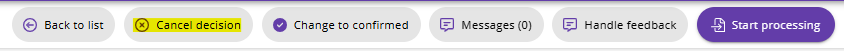 - Välj sedan ’Cancel decision’ knappen’