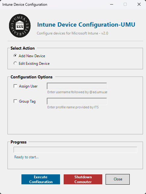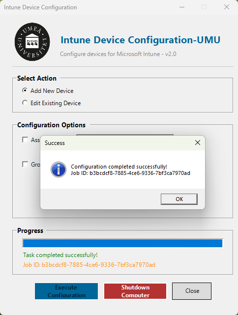 Detta kommando ska plocka ur datorns HWID, taggar med rätt Group Tag och importera datorn till Umeå Universitets Intune-portal.