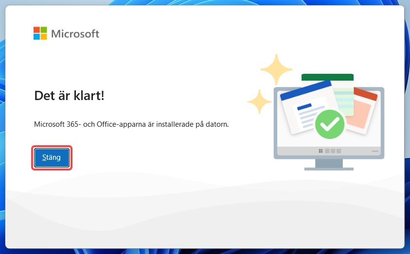 När installationen är klar ser du denna bild, klicka på Stäng.