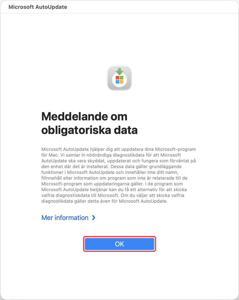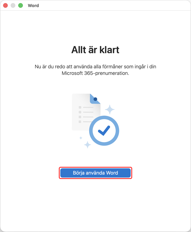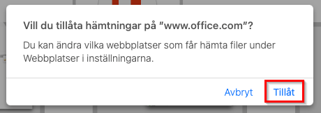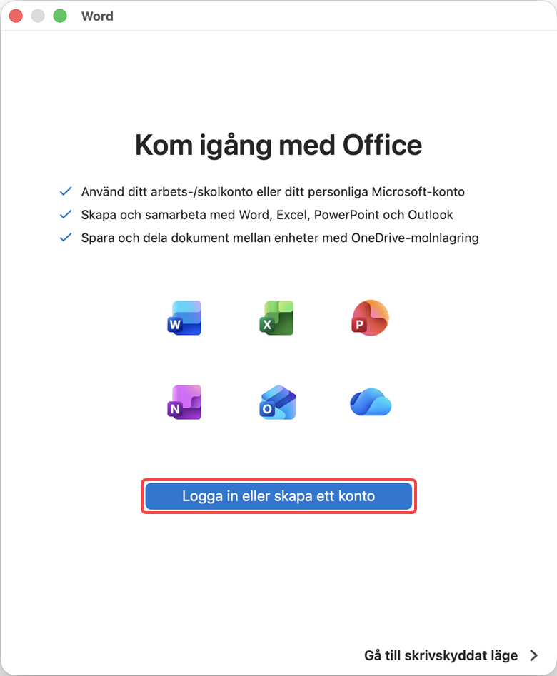 Första gången du öppnar en Office-app kommer denna ruta upp.