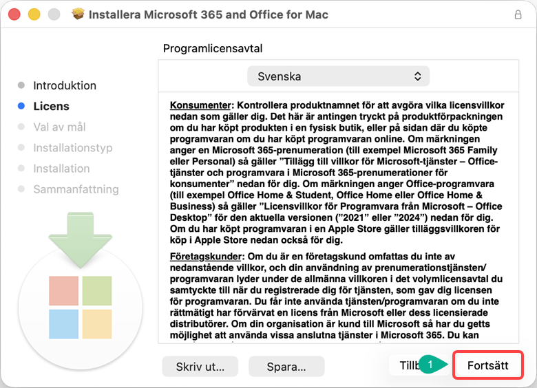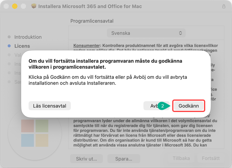 Här behöver du klicka på Acceptera för att godkänna licensavtalet och för att avsluta aktiveringen av Office-paketet.