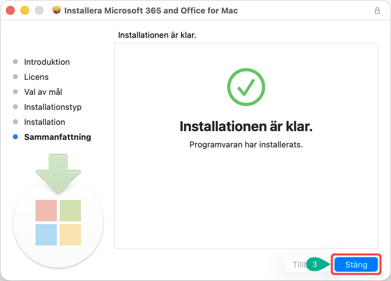 När installationen är klar ser du denna bild, klicka på Stäng.