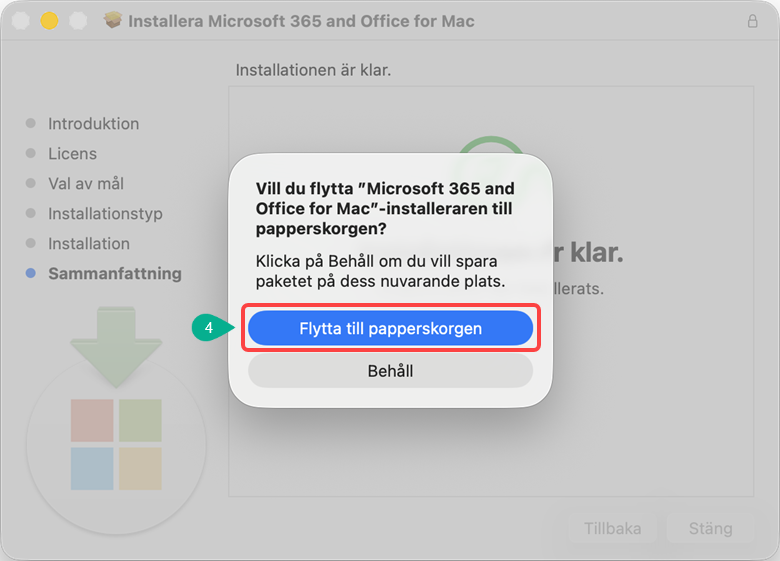 Klicka på Installera appar 3️⃣ uppe i det högra hörnet och på Microsoft 365-appar 4️⃣.