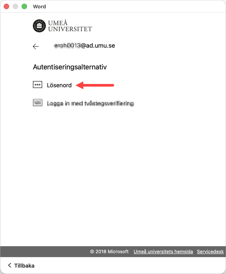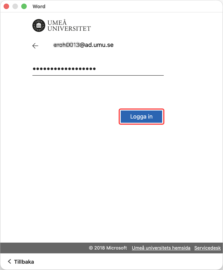 När du blir efterfrågad om inloggning ange då UMU-id@ad.umu.se.