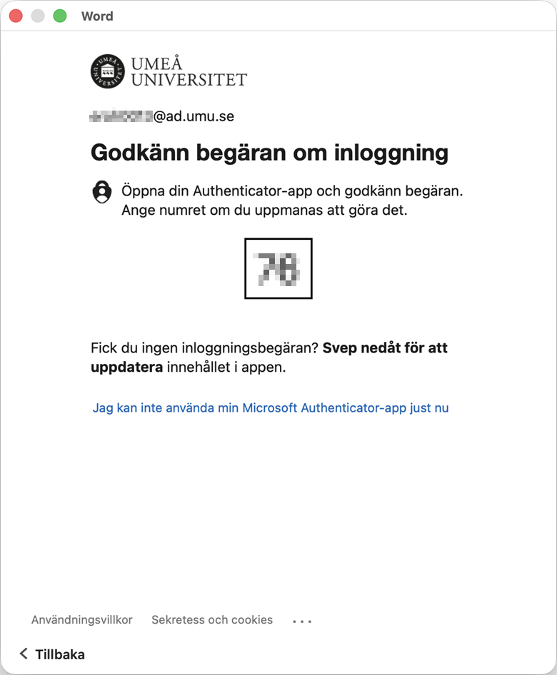 Har du inte aktiverat Microsoft MFA, se denna manual: Aktivera Microsoft MFA (öppnas i ny flik)