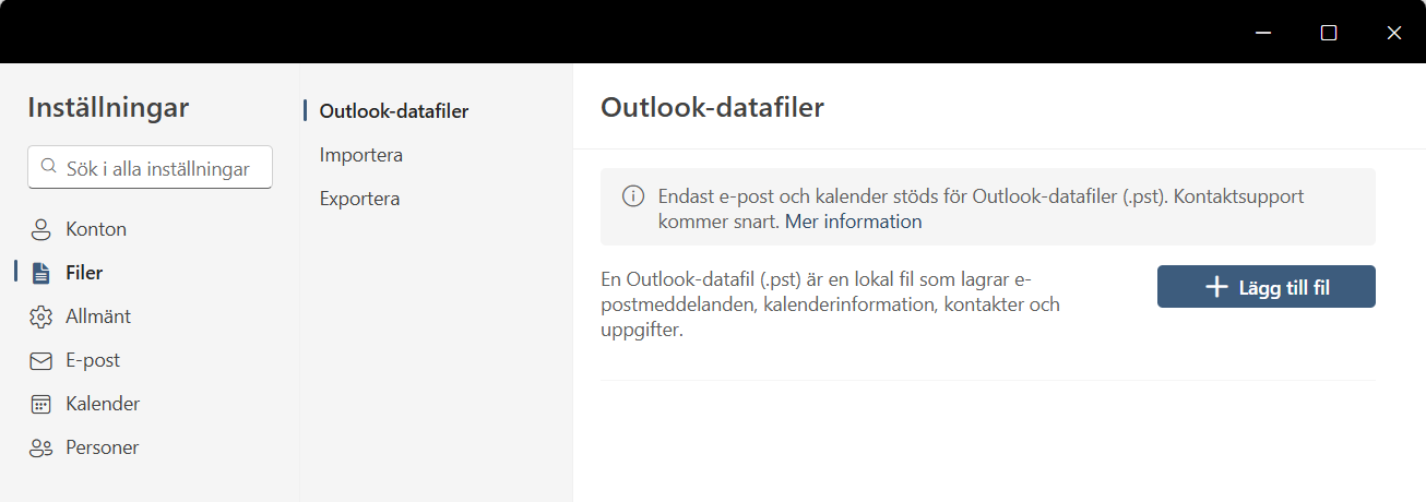 Du kan öppna PST-filer, läsa e-postmeddelanden i PST-filer och söka efter e-post i PST-filer.