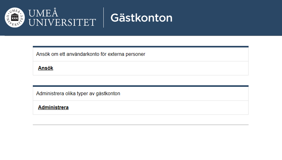 - Gå till https://administrationsverktyg.umu.se/Gastkonton