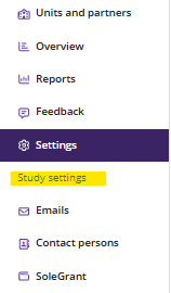 Klicka på ’Settings’  i menyn. Klicka på ’Study settings’.
